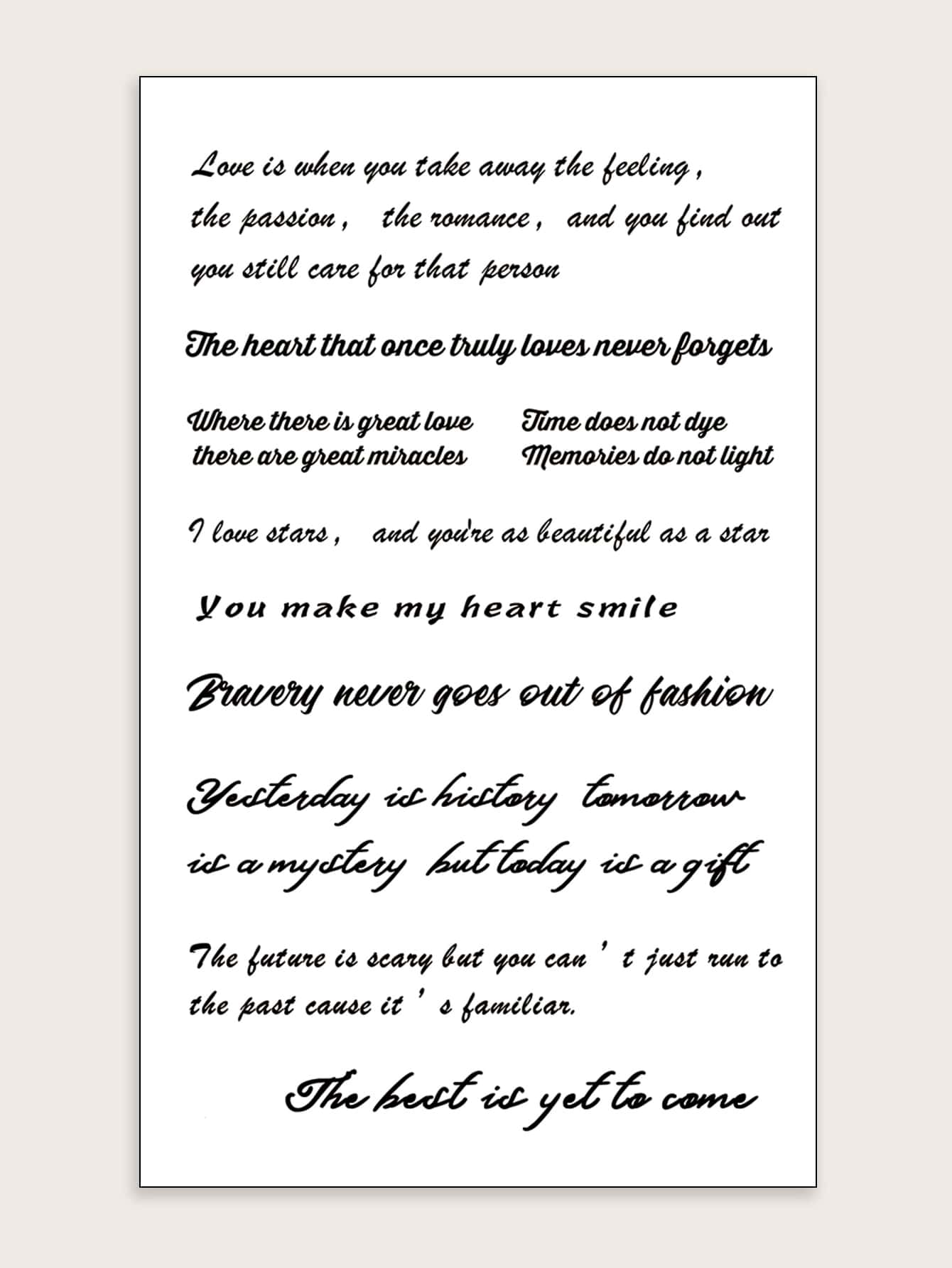 STARTTOOS 纹身贴纸,1 张口号图形临时纹身,适合女性,成人纹身贴纸,逼真的纹身口号图形,适合女性和女孩