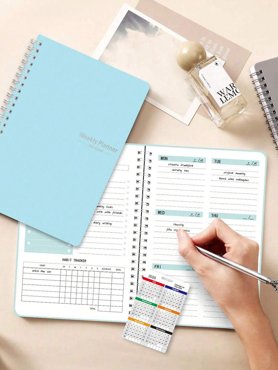 Trees 女士周计划笔记本,无日期,每日日程安排,螺旋装订,目标规划,带习惯追踪器,适合学生、学习用品和返校用品