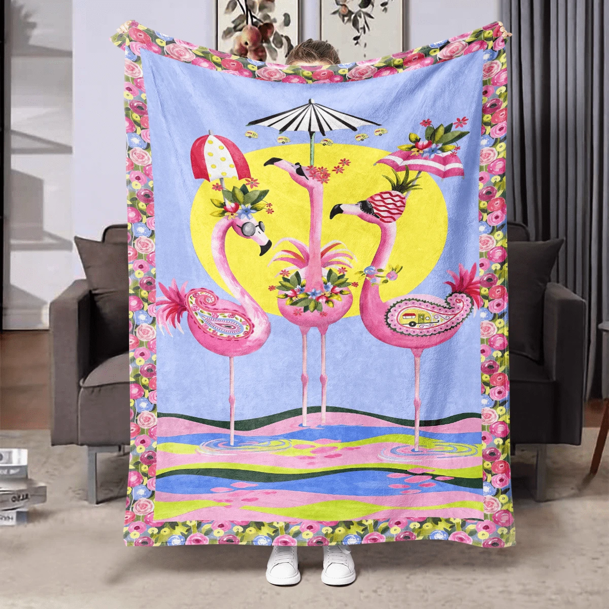 优质柔软数码印花小毛毯,适合午睡、沙发、办公室、卧室、旅行、所有季节