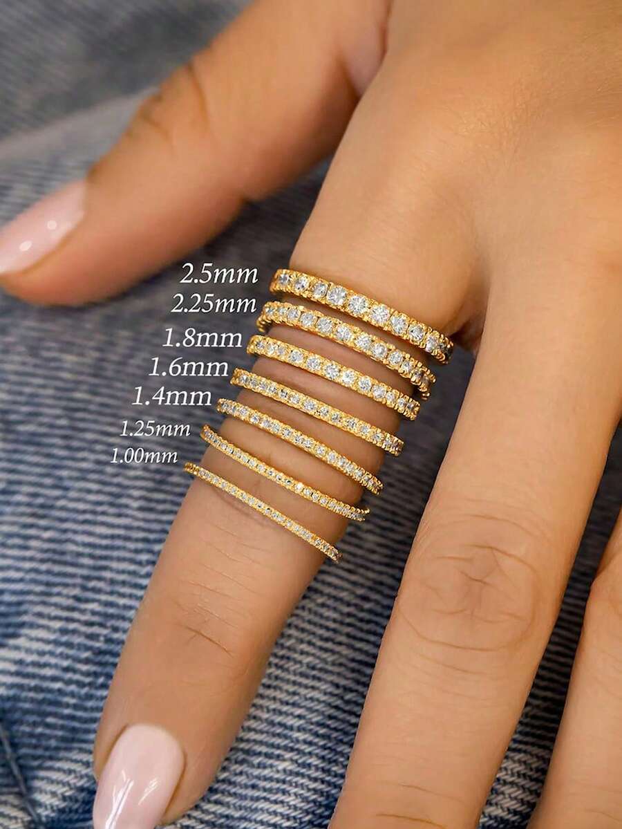 ESBERRY 1 件 1.4-1.8 毫米圆形切割结婚戒指 半永恒戒指 全圆钻石可堆叠戒指 单爪结婚戒指