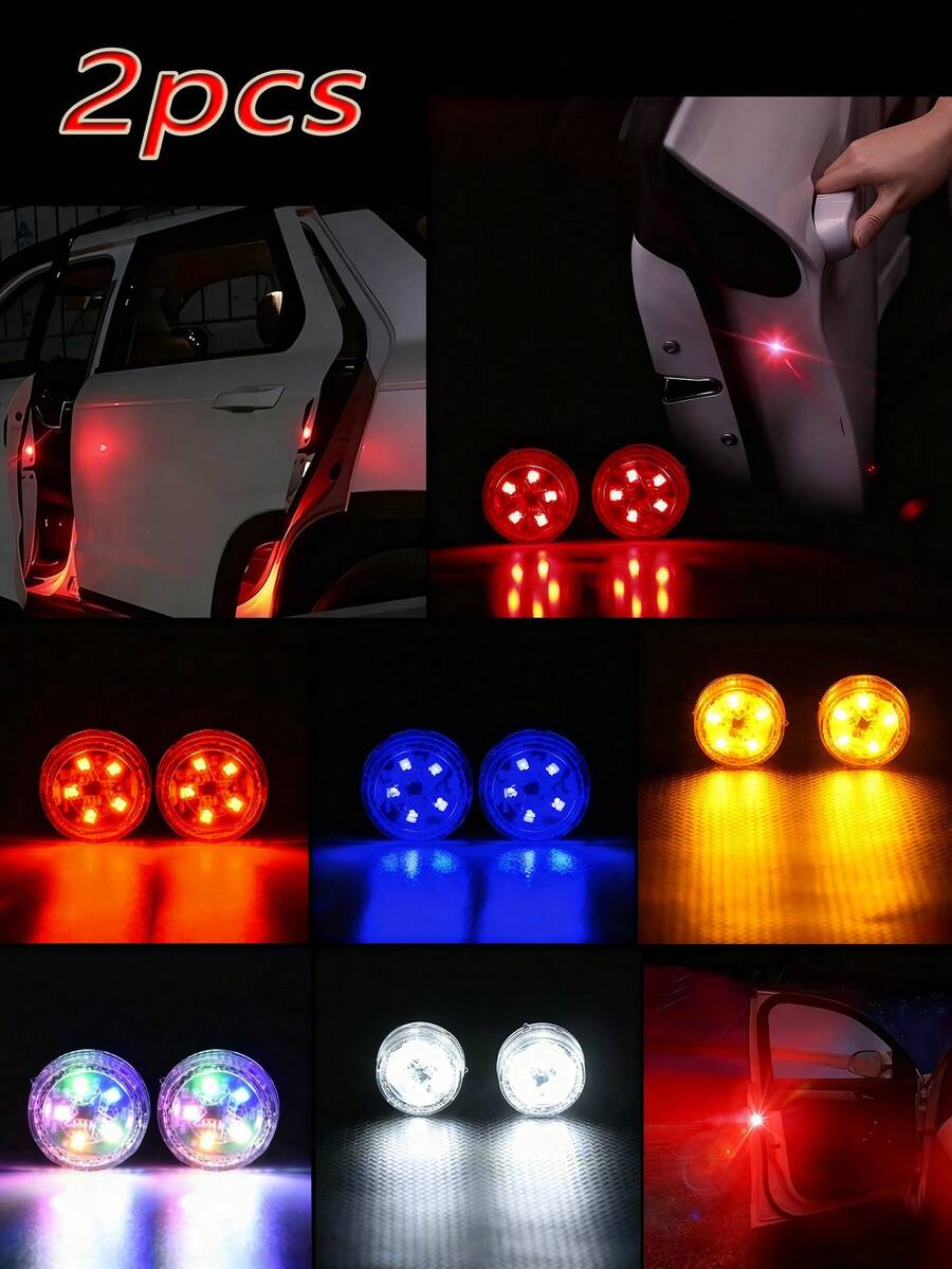 两件式车门碰撞警示灯套件,LED闪光灯,用于防止追尾碰撞,无线安装无需布线,高亮度车门警示手电筒,耐候防震汽车安全配件。