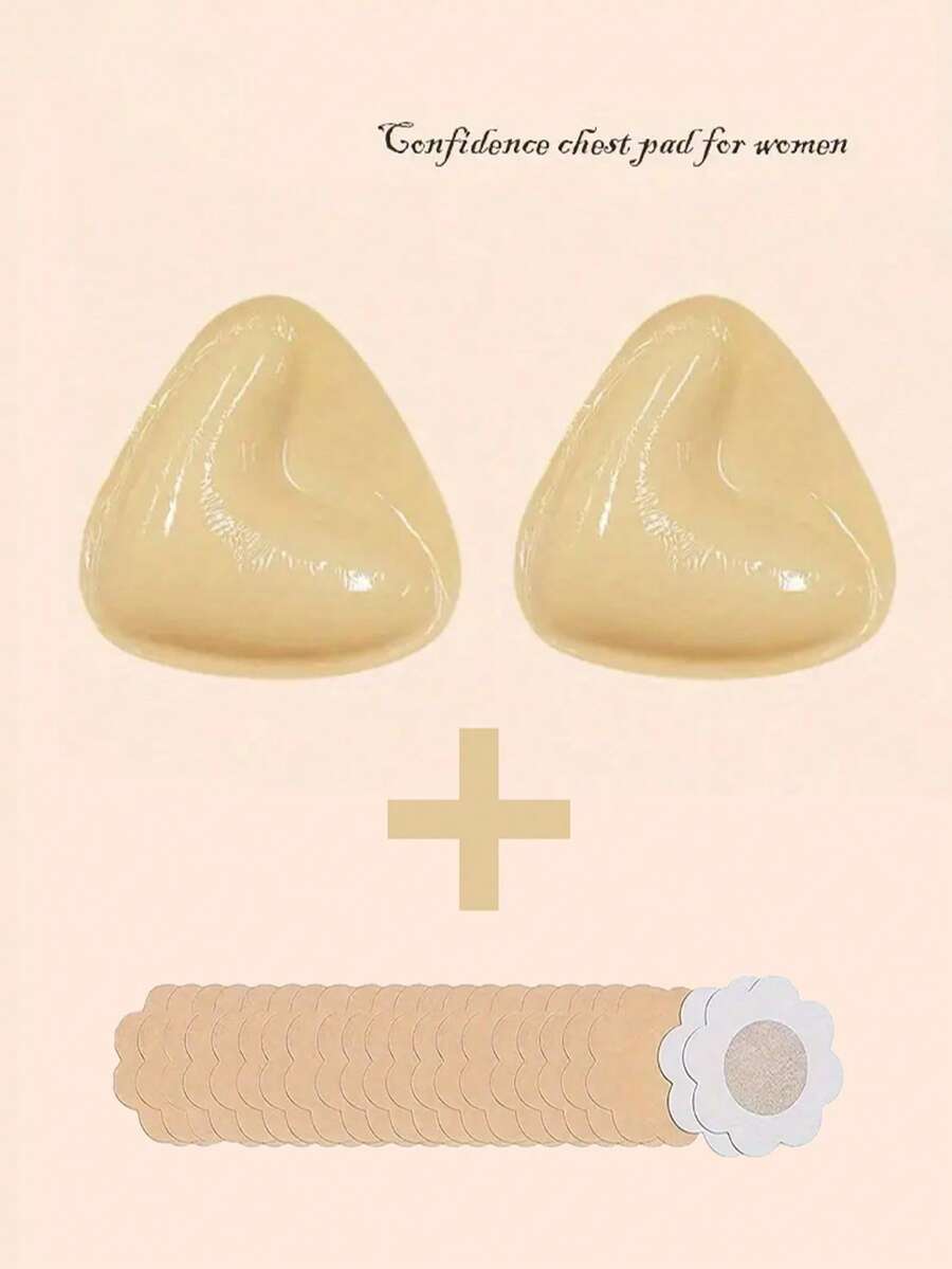 1对透气硅胶三角加厚推高贴,双面自粘隐形乳贴+10片装,一次性无缝自粘式义乳贴-花卉图案,无钢圈支撑,遮盖隐形,适用于健身、泳装、睡眠-一次性使用,不可水洗,隐藏内衣,舒适贴合