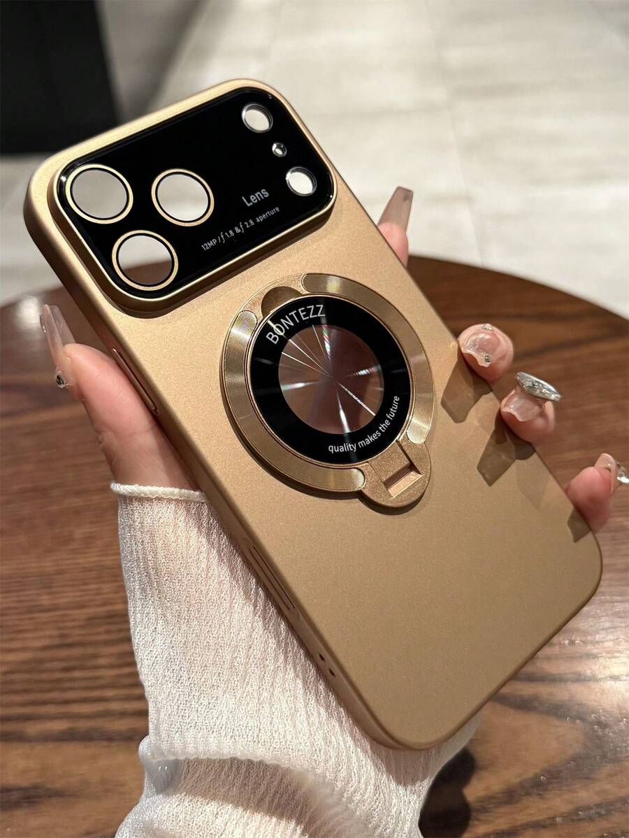 • 超薄简约磨砂镂空磁吸支架手机壳适用于 17Air 16 15 14 Plus 13 12 11 Pro Max奢华无线充电指环支架镜头保护磨砂后盖 - 沙漠金 - 查看 4