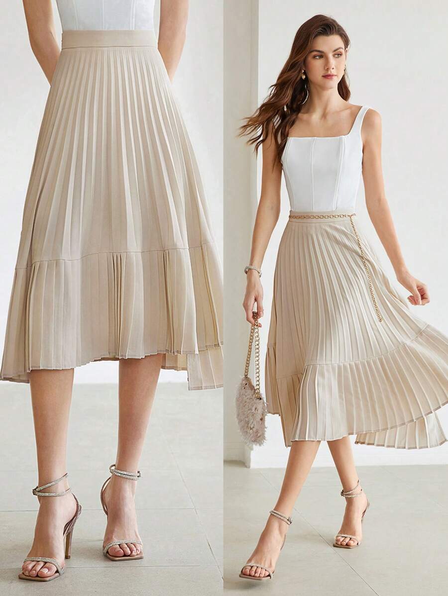 MOTF PREMIUM 纯色百褶裙,夏季服装