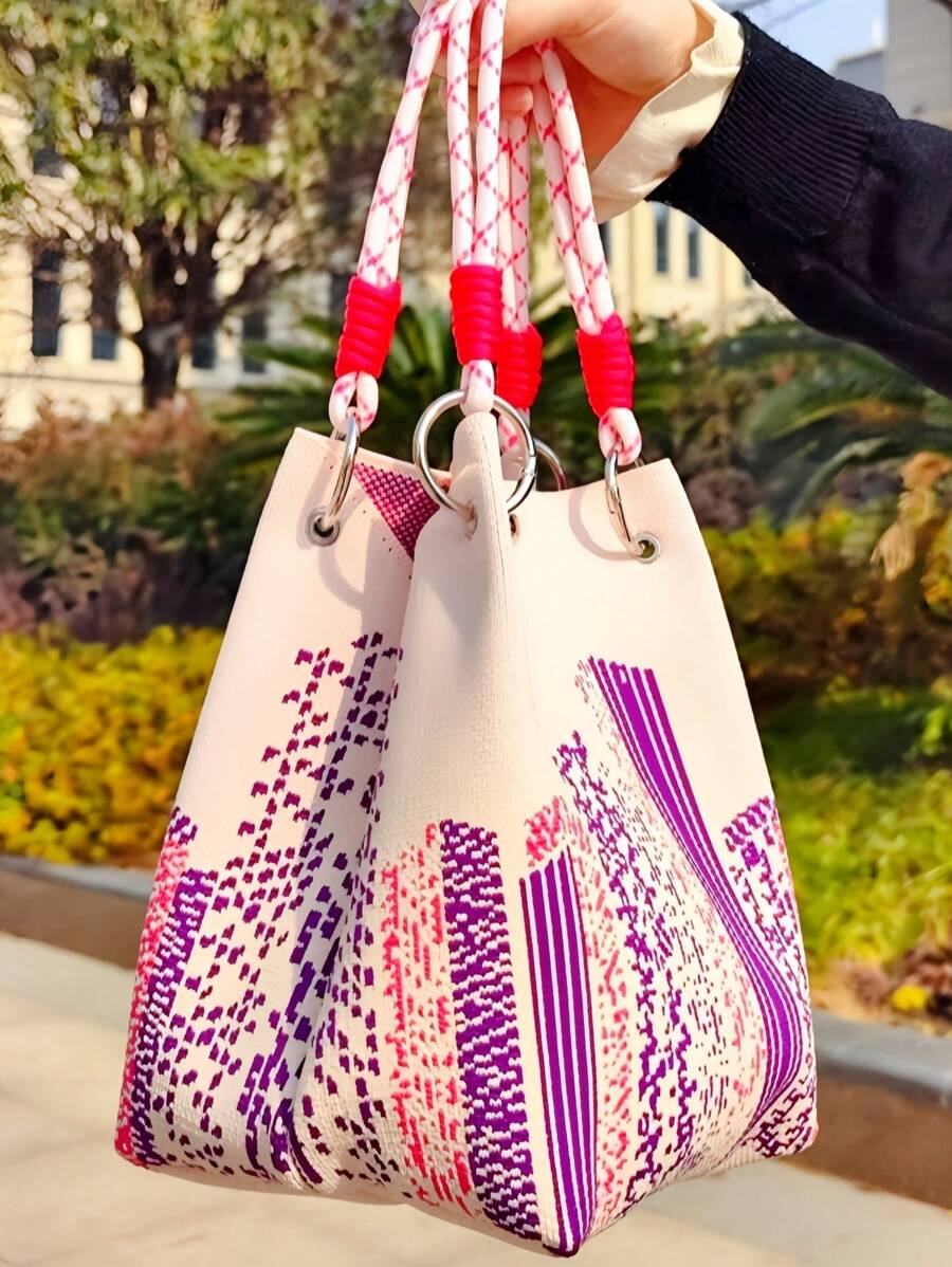 夏季时尚简约迷你抽绳编织袋便携式抽绳水桶包午餐袋