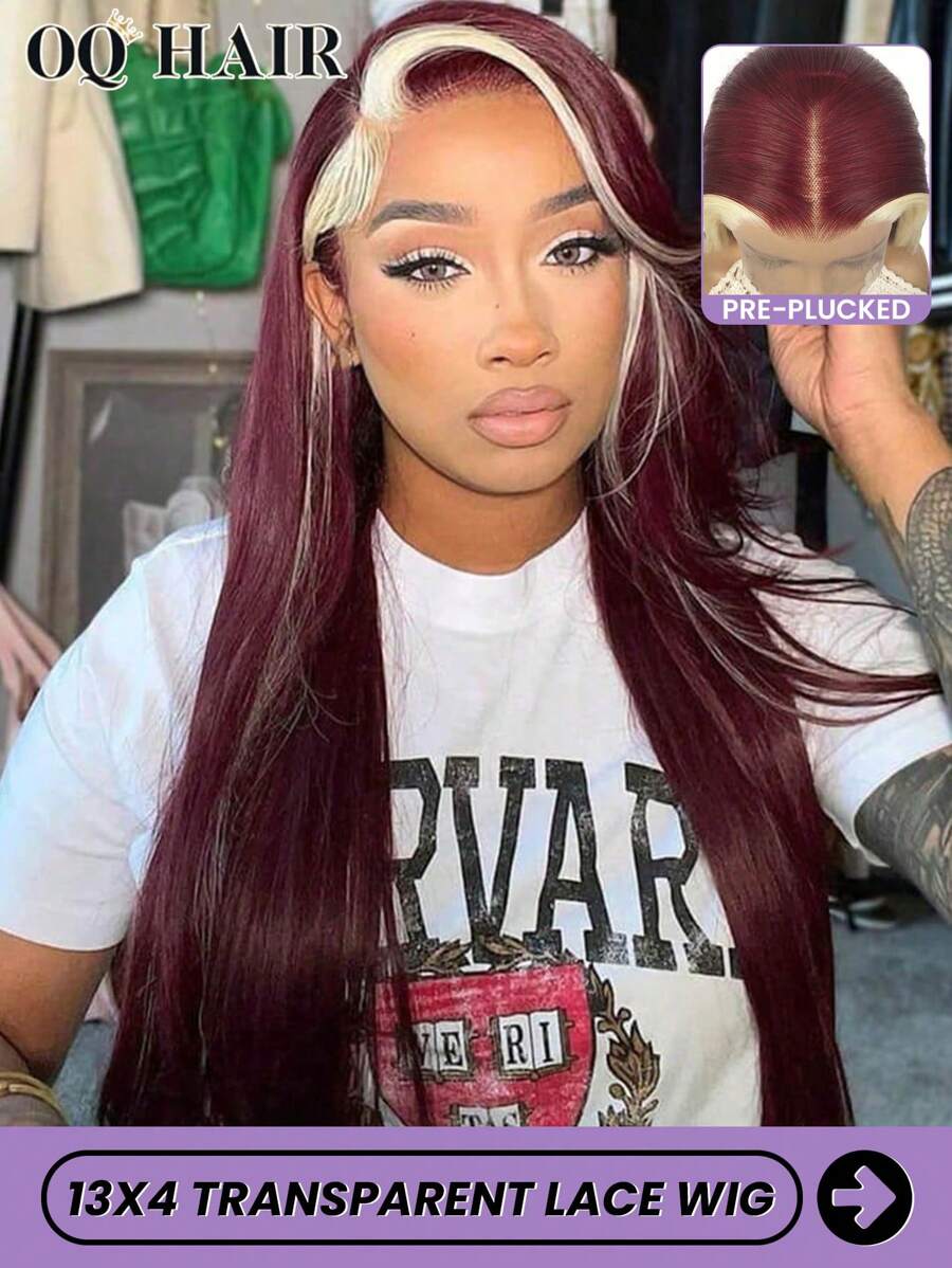 头发 Oq 头发 Oq 假发 直发 13*4 透明蕾丝前假发 Oq 蕾丝前假发 勃艮第 99J/613 金发 Oq 真人发假发 180% 16-28 英寸 预拔蕾丝 迷你结 预漂白头发 万圣节接发配件