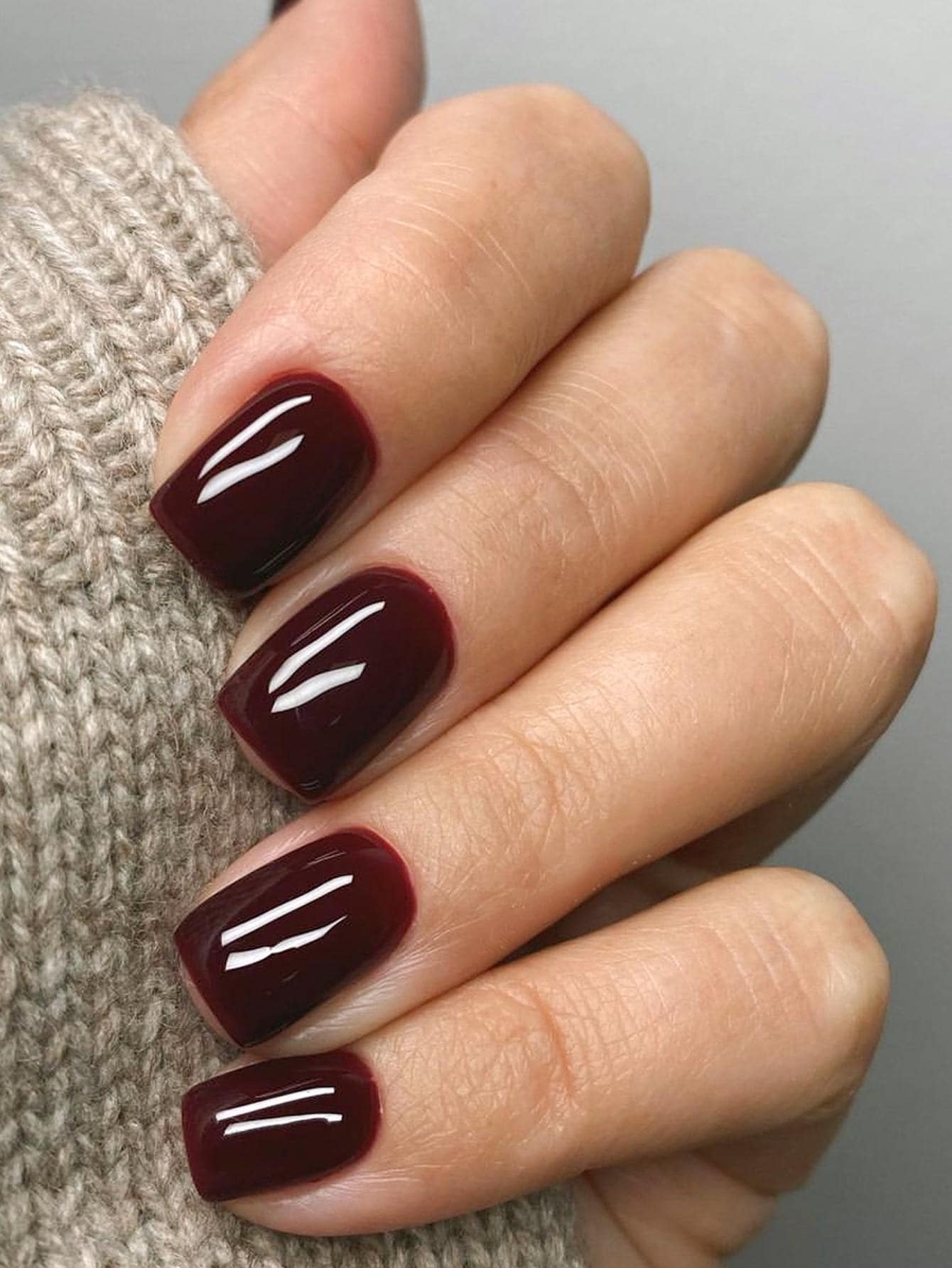 24入組光澤深酒紅色短方形全套假指甲套裝,經典壓克力假指甲用品,讓您的造型升級