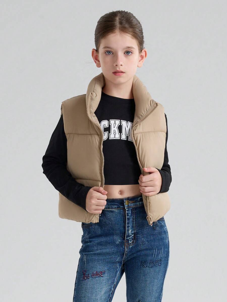 青少年女孩轻便防水羽绒背心夹克,无袖,短款,冬季适用