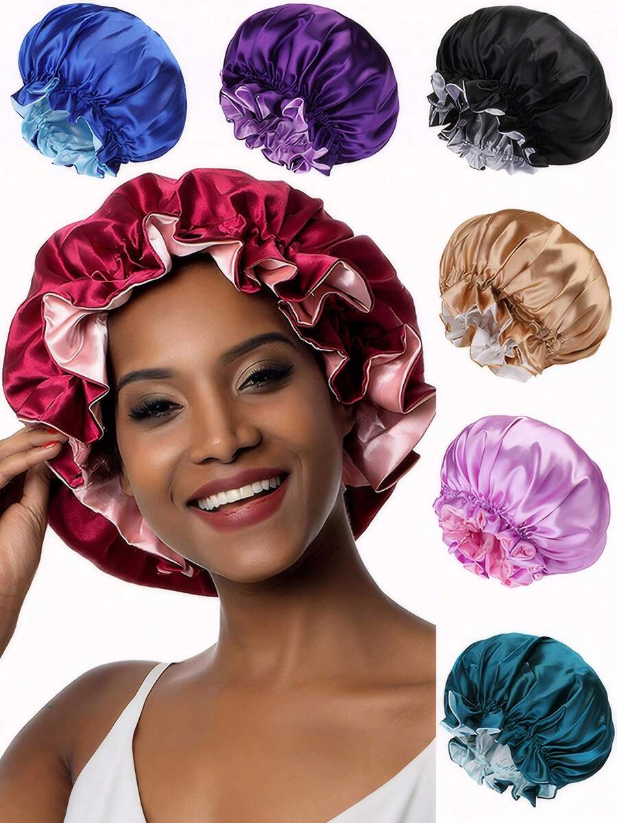 1 件装双层撞色缎面睡帽,大号褶边发套,美容护发头带帽