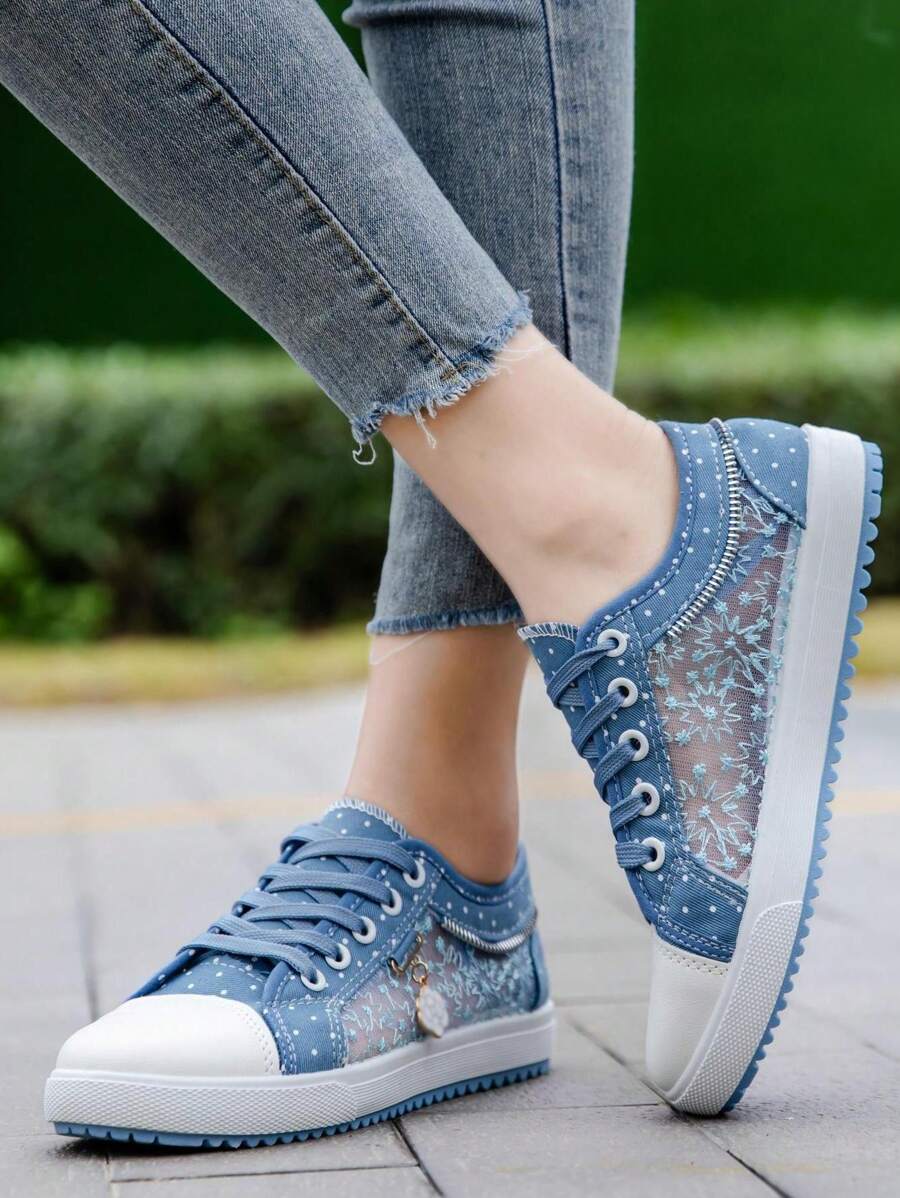 百搭女士网眼平底运动鞋,休闲圆头系带设计