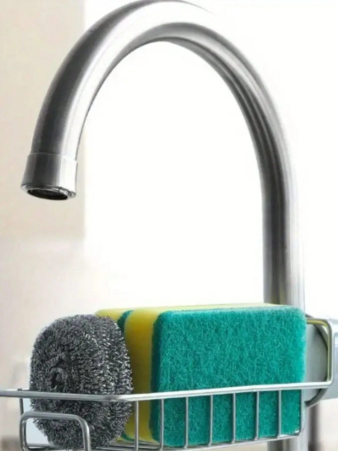 不锈钢水龙头收纳架 - 多功能厨房水槽收纳架、储物架、浴室淋浴篮,可收纳海绵、刷子、毛巾和厨房必需品,壁挂式设计,易于安装