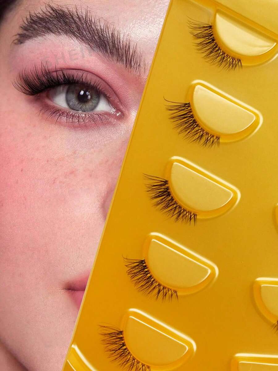 Waloshow 5-20对猫眼自然款假睫毛,半条式假睫毛,卡通簇状假睫毛,蓬松纤长假睫毛,打造自然猫眼妆,短款点缀假睫毛,飞扬假睫毛,3/4长度假睫毛,可重复使用假睫毛套装