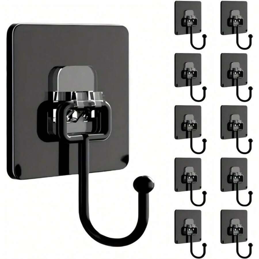 10个黑色自粘墙钩,实用壁挂式自粘挂钩,魔术挂钩,多用途,可用于悬挂衣物、帽子、毛巾、钥匙、杂物等,防水,无需钻孔,安装简便。适用于家庭、浴室、厨房、办公室、酒店等场所,可用于悬挂包包、毛巾、衣物、浴巾等。