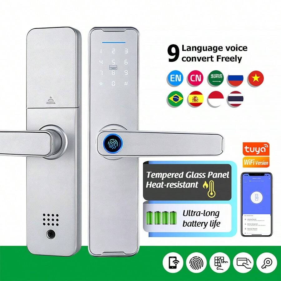 Tropernic Wifi Tuya 门锁智能锁,指纹门锁无钥匙进入门锁智能锁,适用于前门生物识别门锁,带指纹、免费应用程序、共享 Ekey 和 IC 卡(银色)