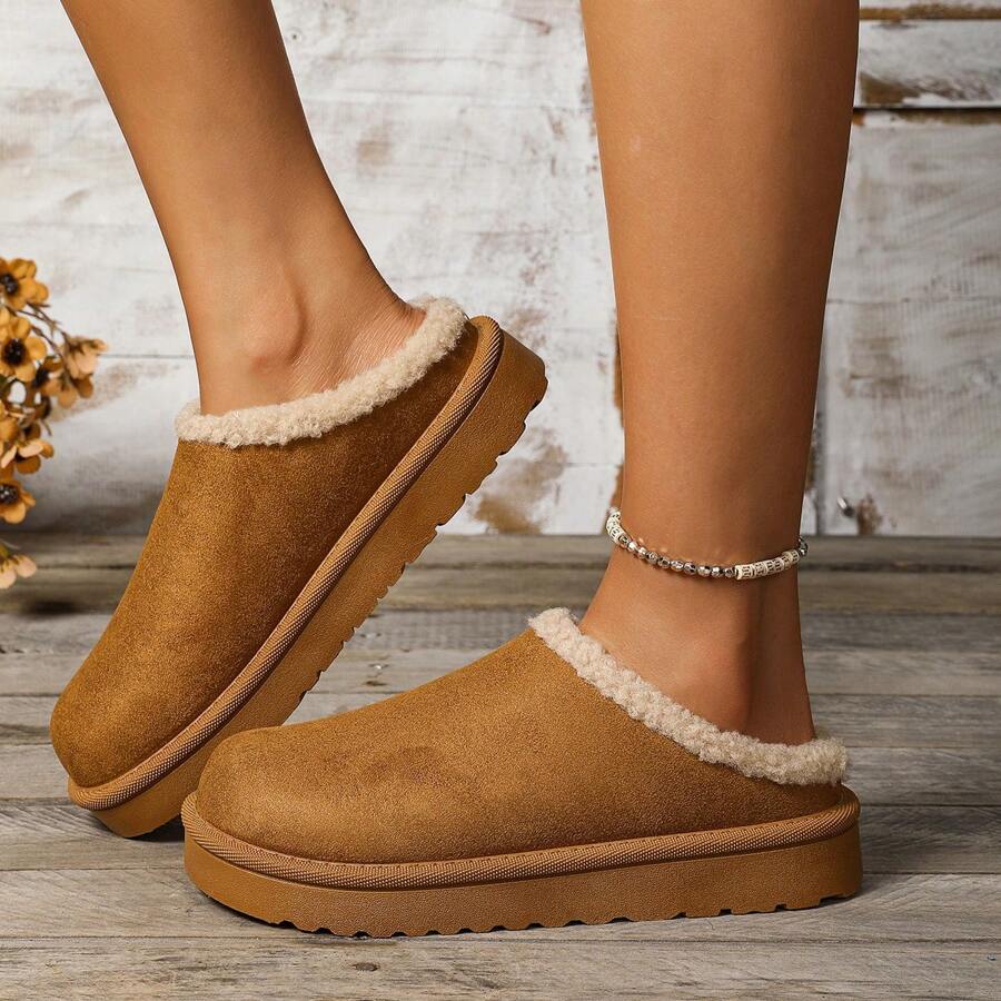 2024冬季新款外贸女款加绒保暖厚底无跟包头羊毛半拖鞋