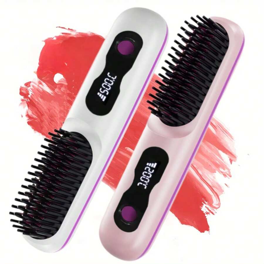 采用负离子技术的无线直发梳 - 快速加热、轻巧、USB-C 充电、耐热、2000mAh 电池、数字显示、适合所有发质、发刷 | 现代发刷 | 离子直发器,情人节礼物,生日礼物,
