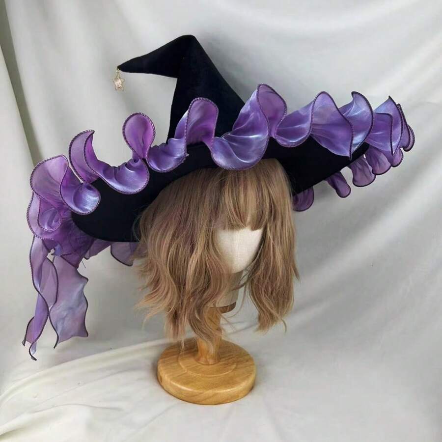 • 女巫帽 女巫帽 大号黑色女巫巫婆帽 万圣节角色扮演服装宽边尖顶帽礼物 - 彩色 - 查看 10