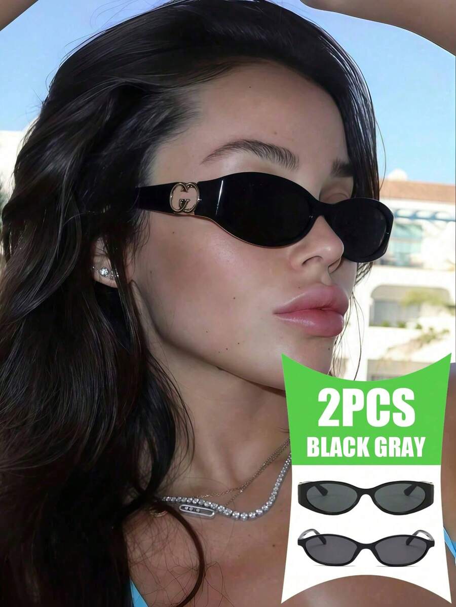 2 件装新款时尚欧美风格小框眼镜,复古椭圆形女士眼镜