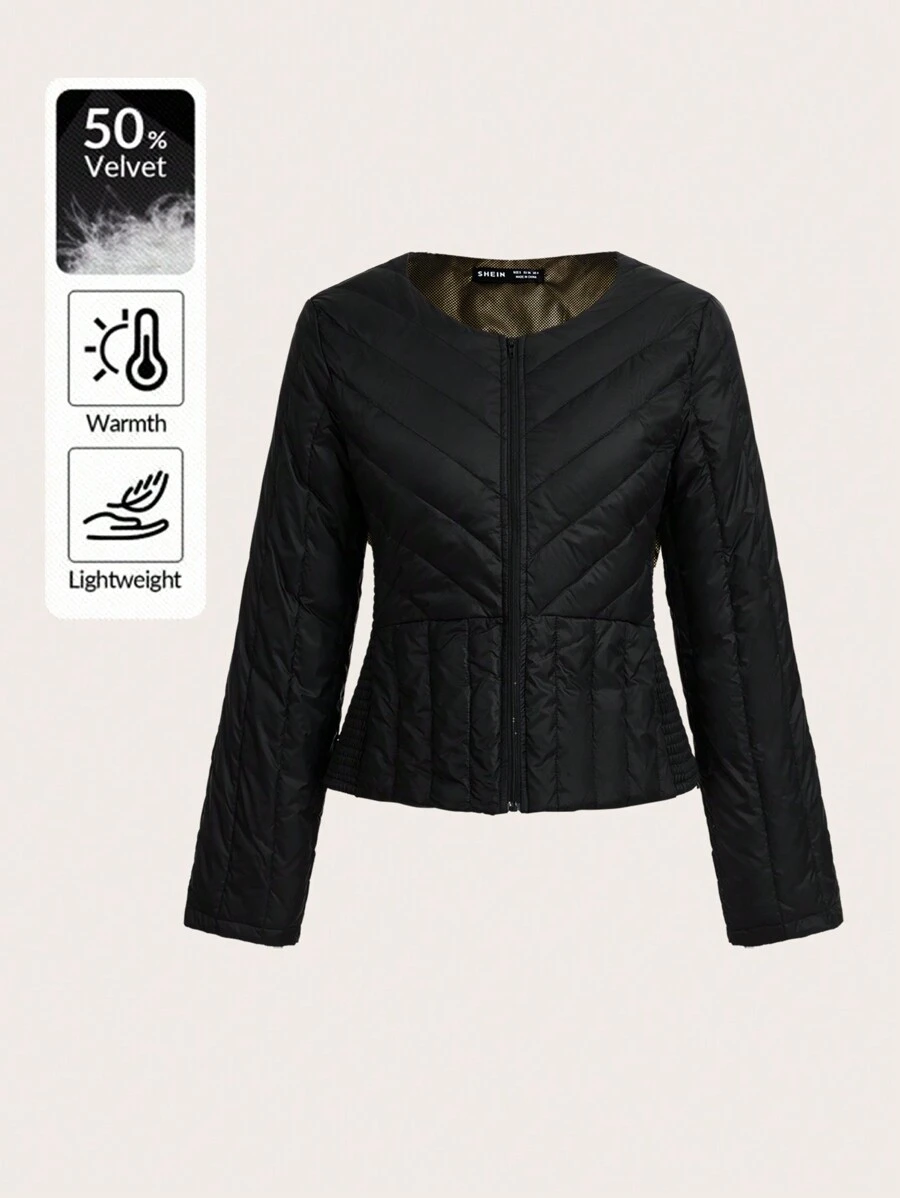 SHEIN Essnce SHElN Wear 拉链短款羽绒和羽毛大衣