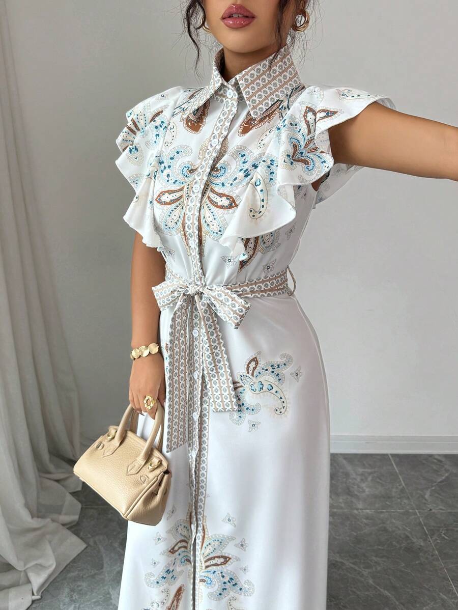 Chiquease 女式优雅复古花卉印花无袖系带长裙