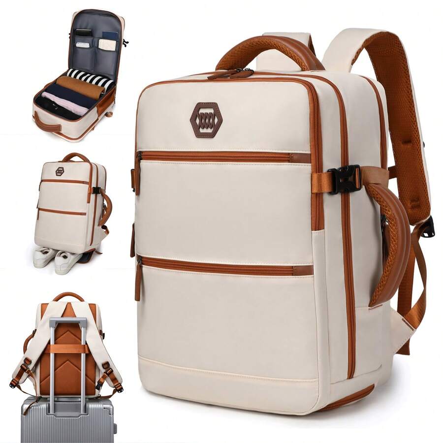 女士旅行背包,大学休闲日用包,带鞋隔层的徒步旅行背包,可容纳 15.6 英寸笔记本电脑,大学,旅行,航空公司认可的随身背包