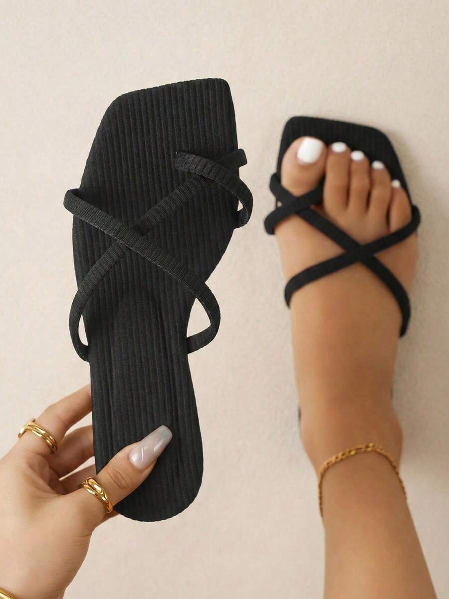 planare 女士简约交叉绑带平底凉鞋,时尚夏季平底凉鞋