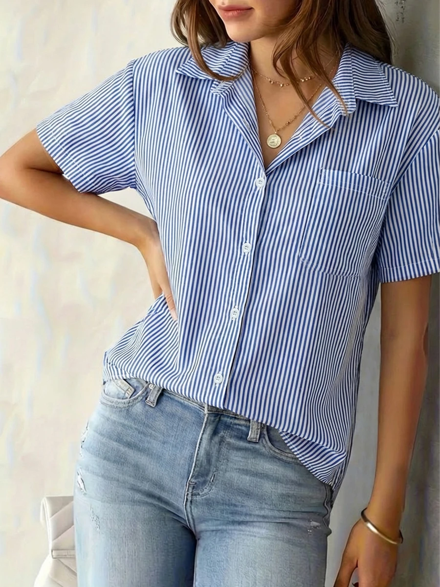 女士条纹衬衫,休闲时尚短袖衬衫,夏季