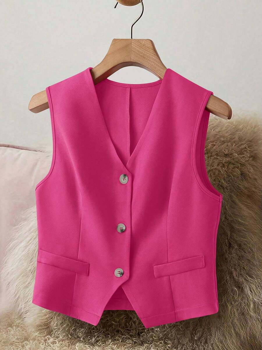 女士优雅无袖 V 领西装外套,时尚前扣背心外套,适合所有季节