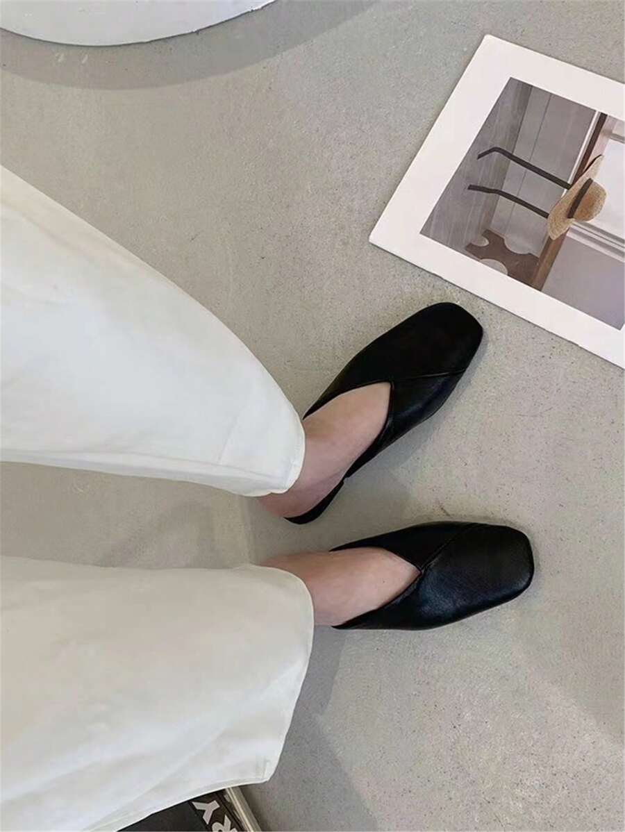 女士優雅方頭穆勒鞋,平底泵鞋,輕盈PU皮革鞋面