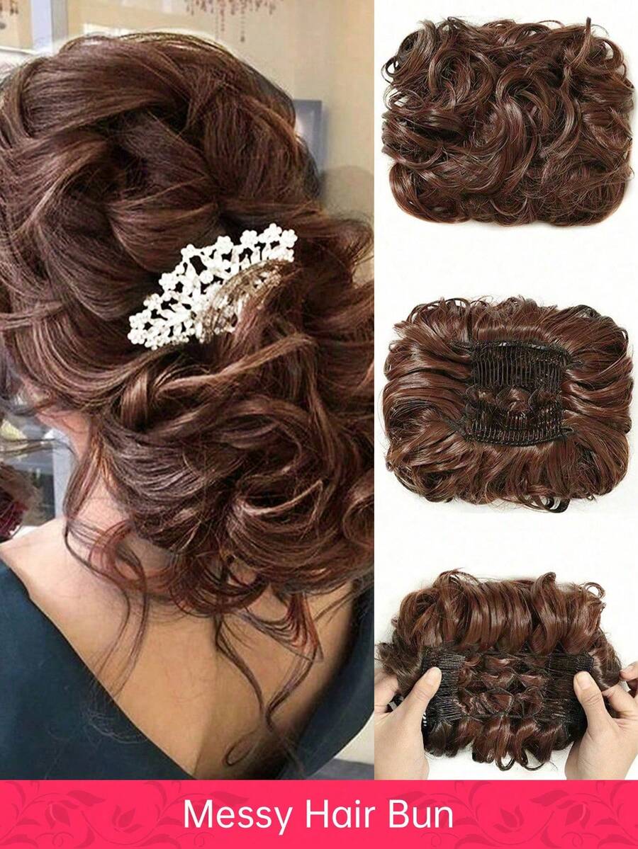 女士凌乱发髻发圈,棕色发髻造型器,合成蓬松发髻发片,带易拉伸梳子,适合日常佩戴