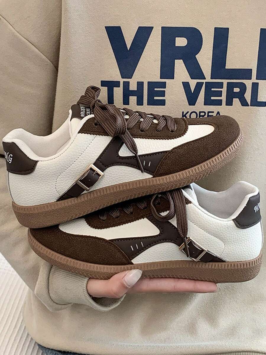 女士户外休闲运动鞋,金属扣装饰,人造革,系带,舒适时尚,2024年秋季新款