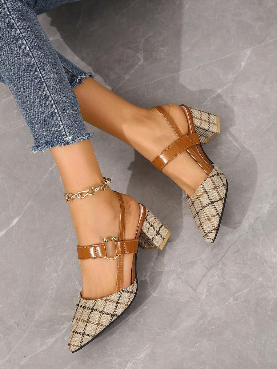 • 女士尖头粗跟露背派对/婚礼/通勤百搭时尚高跟凉鞋,春/秋 - 棕色 - 查看 6