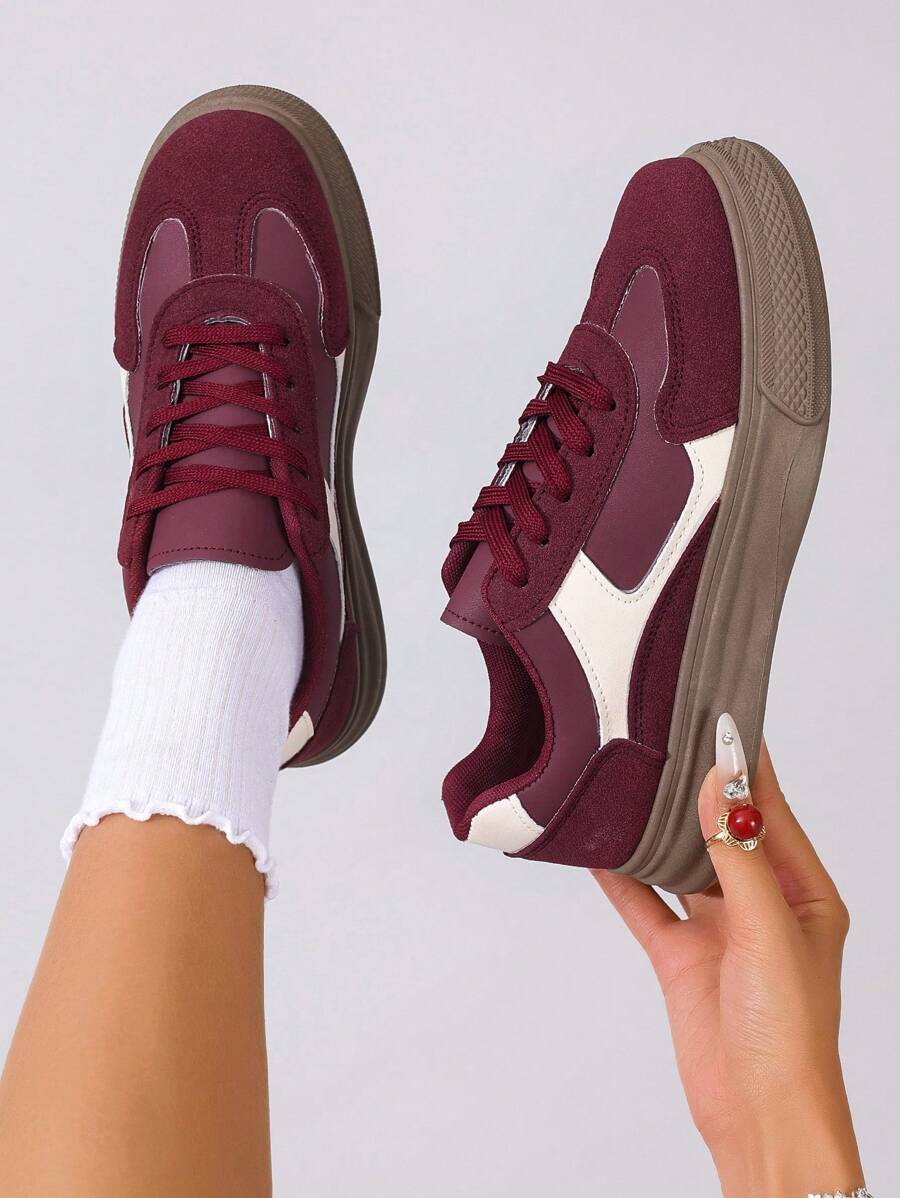 女式复古厚底系带休闲运动鞋,春秋季