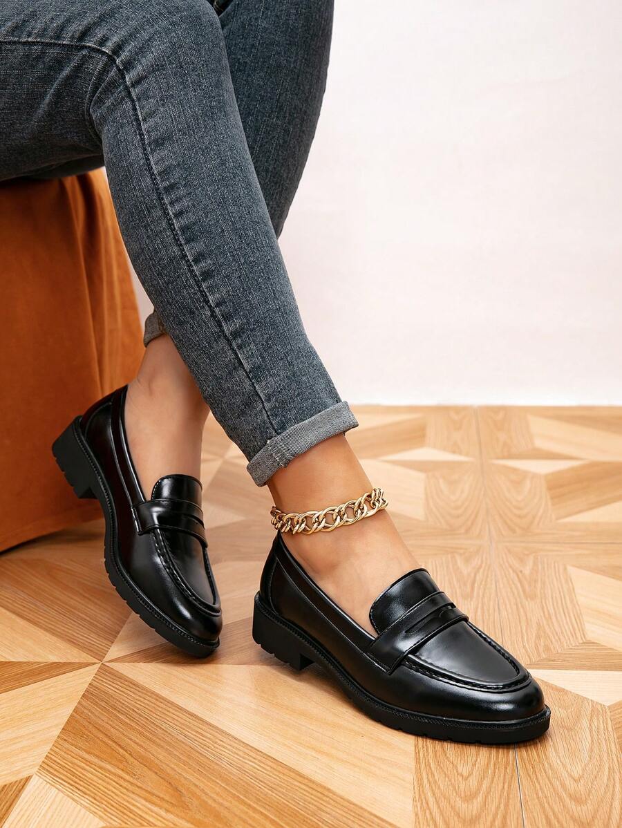 女士圆头平底乐福鞋,厚底复古休闲鞋,学院风学生鞋,春秋季