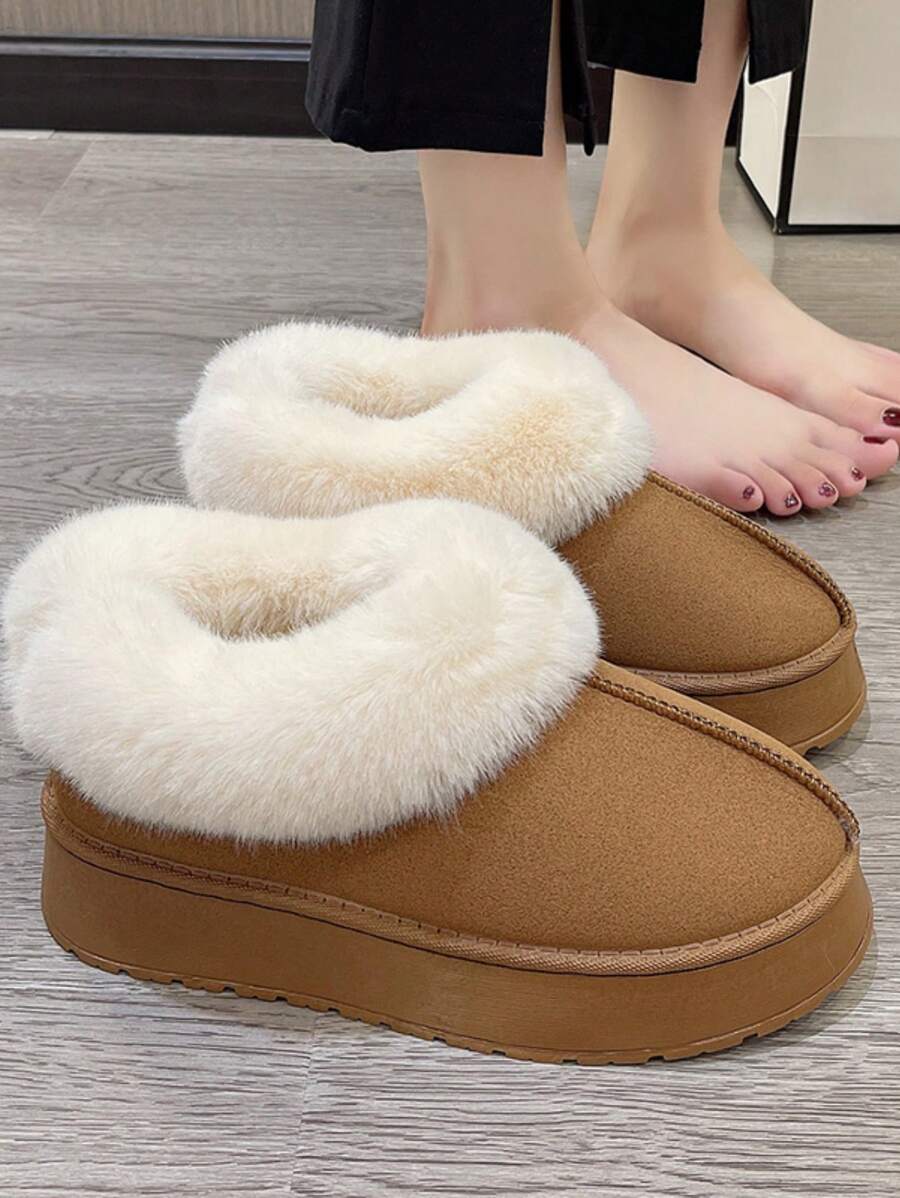 女式冬季一脚蹬雪地靴,毛绒衬里厚雪地靴