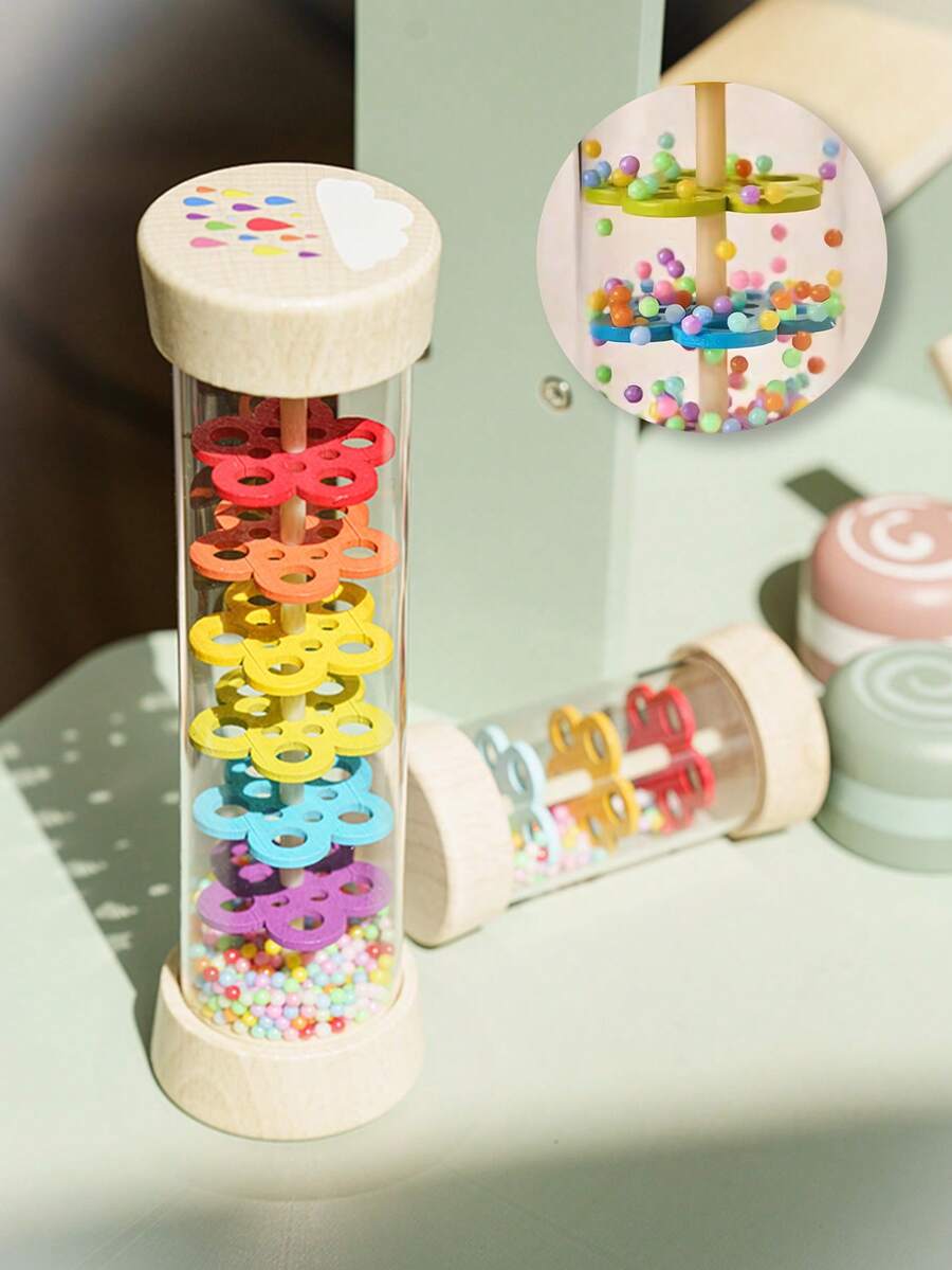 儿童木制雨声器,雨棒 - 可发出声音安抚婴儿,适用于婴儿摇铃管雨棒摇铃音乐感官听觉乐器玩具,适合婴儿儿童女孩