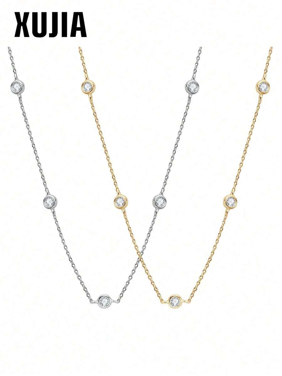 XUJIA 一件时尚简约新娘首饰,925纯银圆形切割,镶嵌2.5毫米(0.06克拉)/4毫米(0.3克拉)莫桑石,配有女士项链,适合万圣节派对、圣诞节、送给女朋友或作为生日礼物。