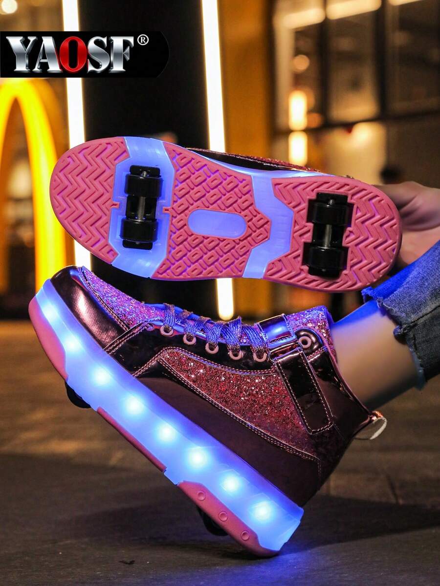 YAOSF 儿童及青少年轮滑鞋 - 升级版,稳定性更强,可拆卸两用运动鞋,街头酷炫轮滑鞋,户外运动夜光鞋,亲子鞋,新款直排轮滑鞋,带轮夜光鞋,夜间照明鞋