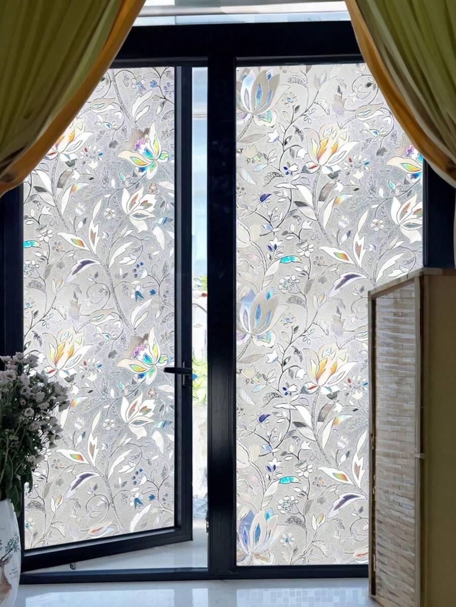 YUANYI 1 件 17.52 英寸 * 78.74 英寸静电贴窗膜、玻璃贴膜、3D 全息玻璃贴纸静电贴防偷窥膜适用于办公室和家居装饰,PVC 自粘,可重复使用!