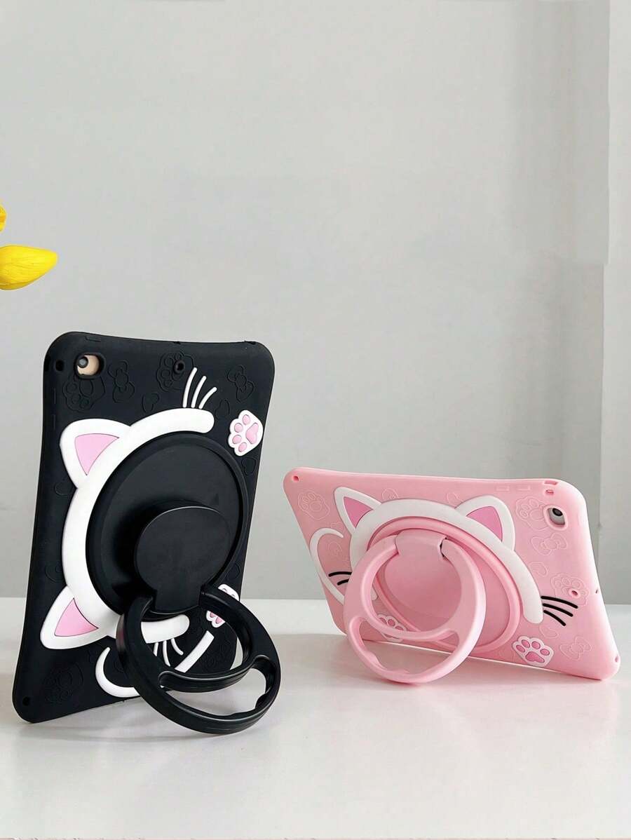 sosofi 粉色1入組可愛的貓頭防墜全覆蓋矽膠平板保護殼,帶360度旋轉底座,適用於三星Galaxy Tab A8 / Tab A7 Lite / Tab A7 / 華為 / 荣耀Pad 6/7/8 / Matepad 10.4 / 11 / Se 10.4